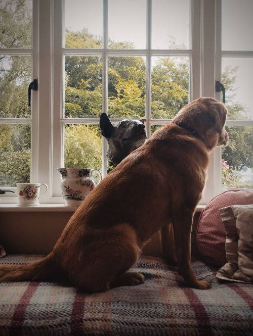 The corridors were lined with portraits of previous gun dogs; Pointers, Retrievers and Spaniels watched over my every move. And waiting to welcome me was Nell, a beautiful Fox Red Labrador who was gentle and shy with impeccable manners. The gardens sprawled over a few acres and Nell loved to wander in them – as long as I was there to hold her paw and reassure her when a pigeon flapped unexpectedly or a squirrel gave her a funny look. Fortunately, the homeowners were so elderly that she was never going to be expected to help flush out pheasants and the like; she would have bolted at the first bang and never been seen again.