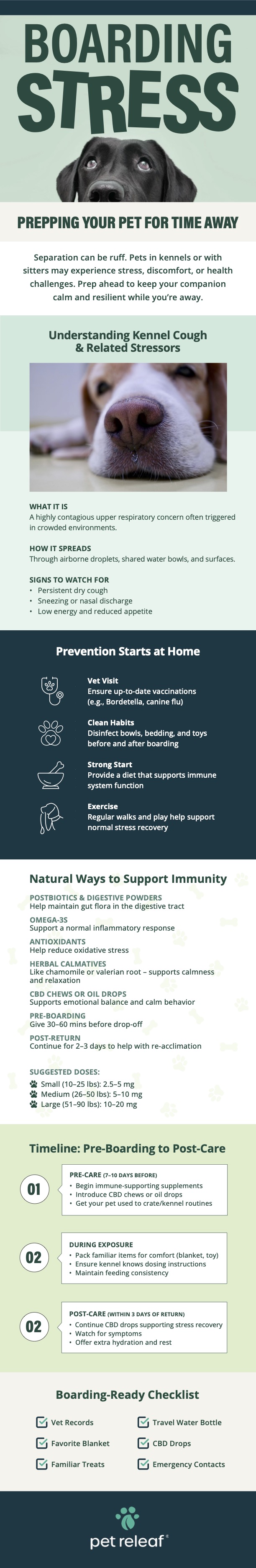 Proper preparation for boarding sets the stage for a positive experience. By introducing your dog to the facility, maintaining routines, providing familiar items, and using calming strategies, you can ensure their comfort and well-being. Careful planning benefits both your dog and your peace of mind, making boarding a less stressful experience for everyone involved. To learn more tips and tricks on preparing your dog for boarding, feel free to look over the accompanying infographic below.